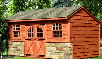 (2) Arch Top 12 Lite Windows, (1) Double Carriage Door, 3' High Stone Front, 7' Front Wall, 6' Back Wall