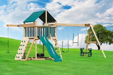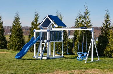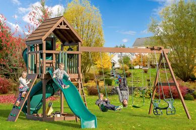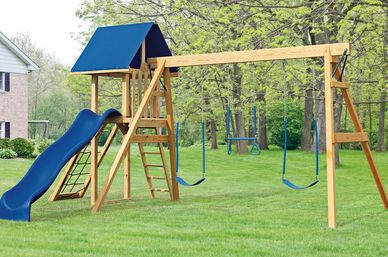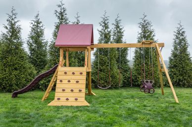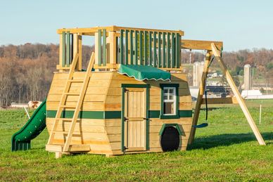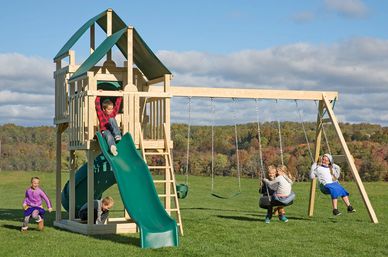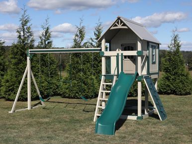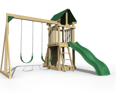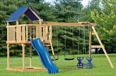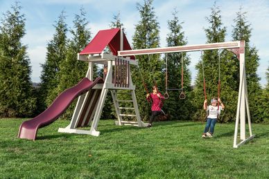 Are you looking for a compact playset quickly? We have just what you're looking for! We offer 2 wood and 1 vinyl Quick Ship Playsets to choose from. These sets come as shown, in colors shown, we do not make changes to these sets. The kits come with step by step written instructions & a picture assembly manual. Quick Ship kits include local delivery, ASSEMBLY IS NOT INCLUDED.