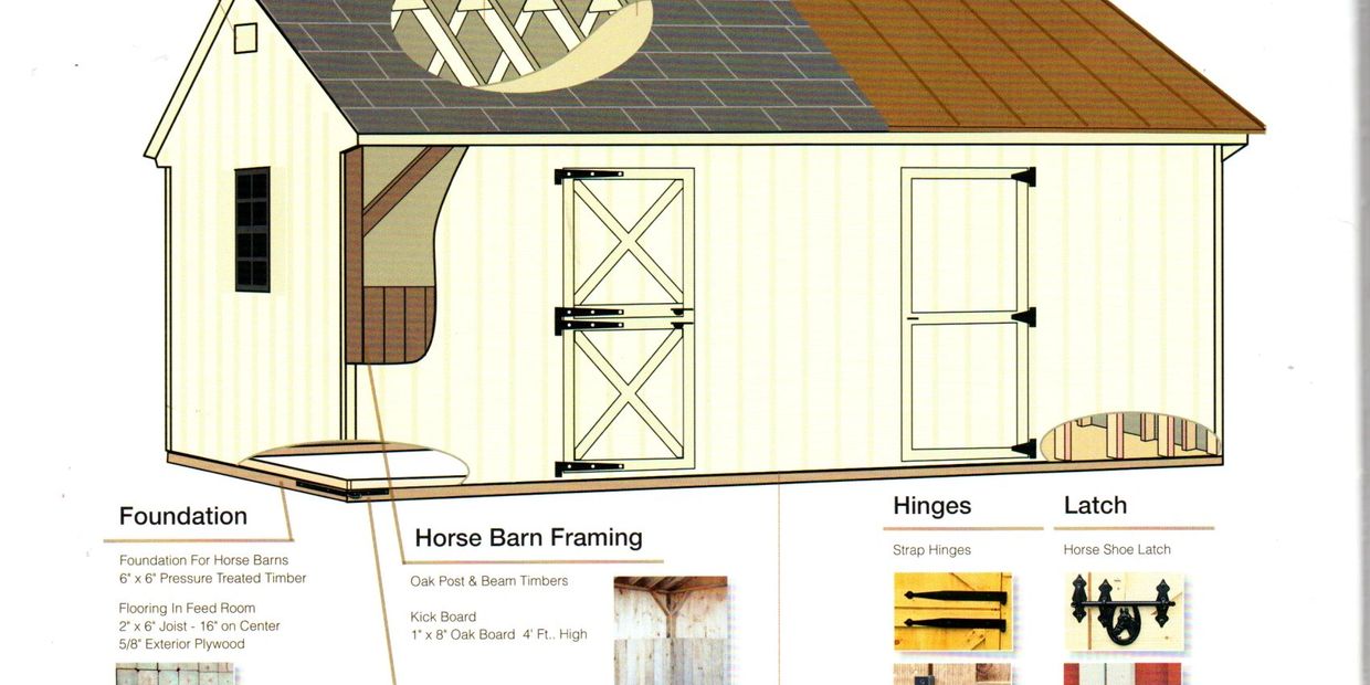Standard Features: Pine Board & Batten siding, oak frame, oak kickboards, (1) 4x7 Dutch door per stall, (1) window w/grill per stall, partitions w/grill in multiple stall units, gable vents, local delivery